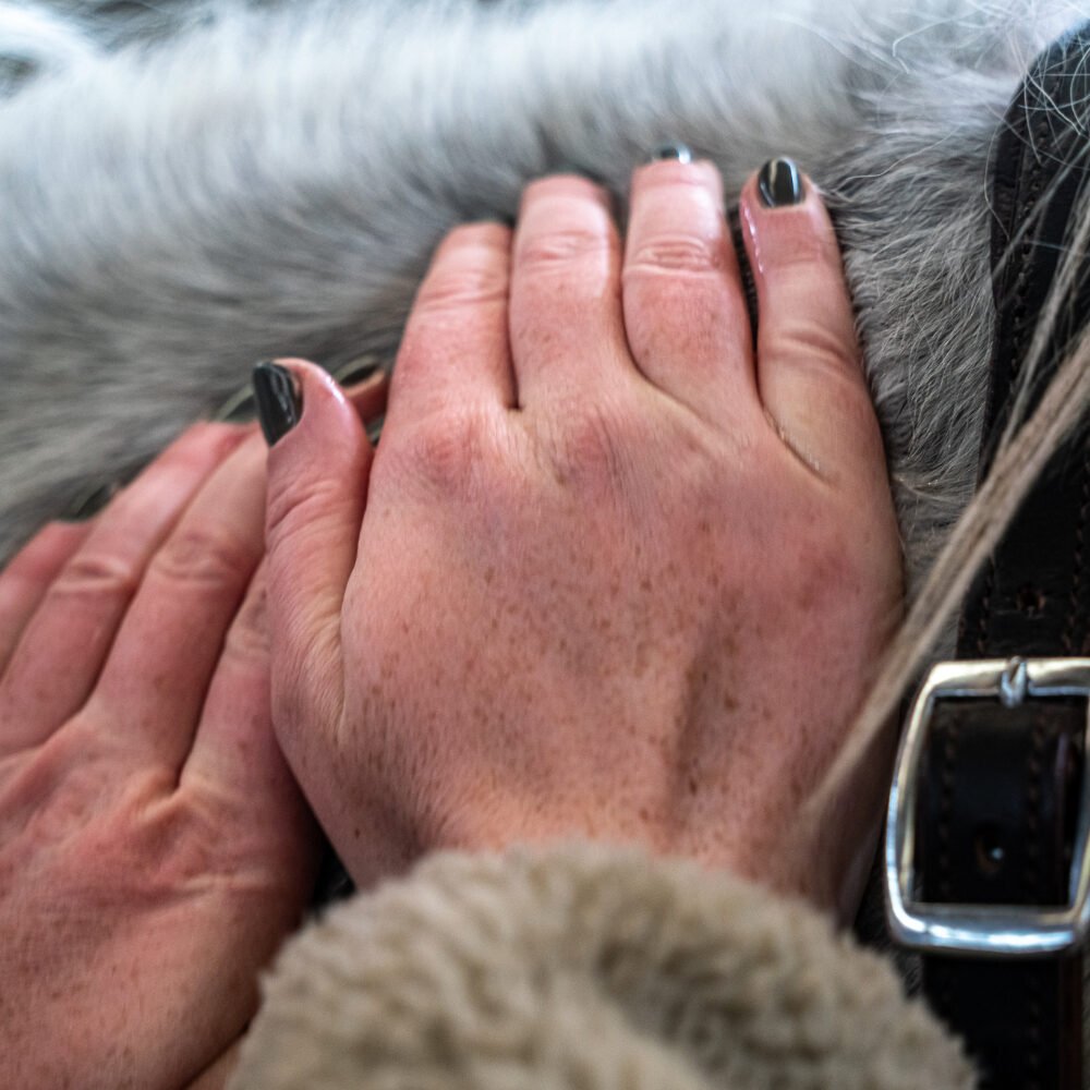 Q : Mon cheval n’aime pas être touché, que faire ? R : Commencez par de simples caresses avec l’huile sur les zones qu’il apprécie, puis étendez progressivement.